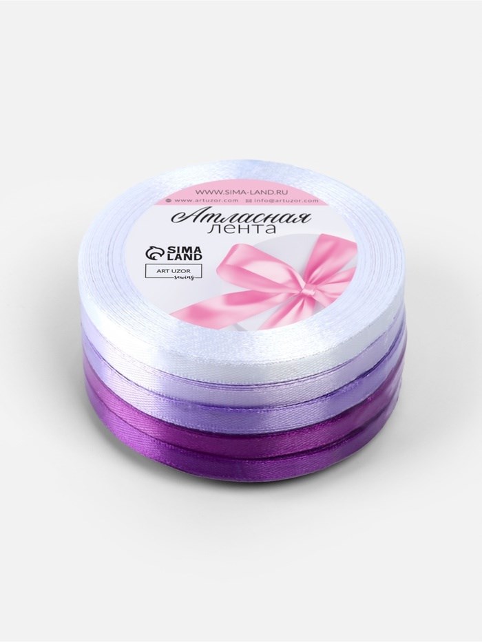 Атласная лента, набор 5 шт., 6 мм, 23±1 м, фиолетовая, сиреневая