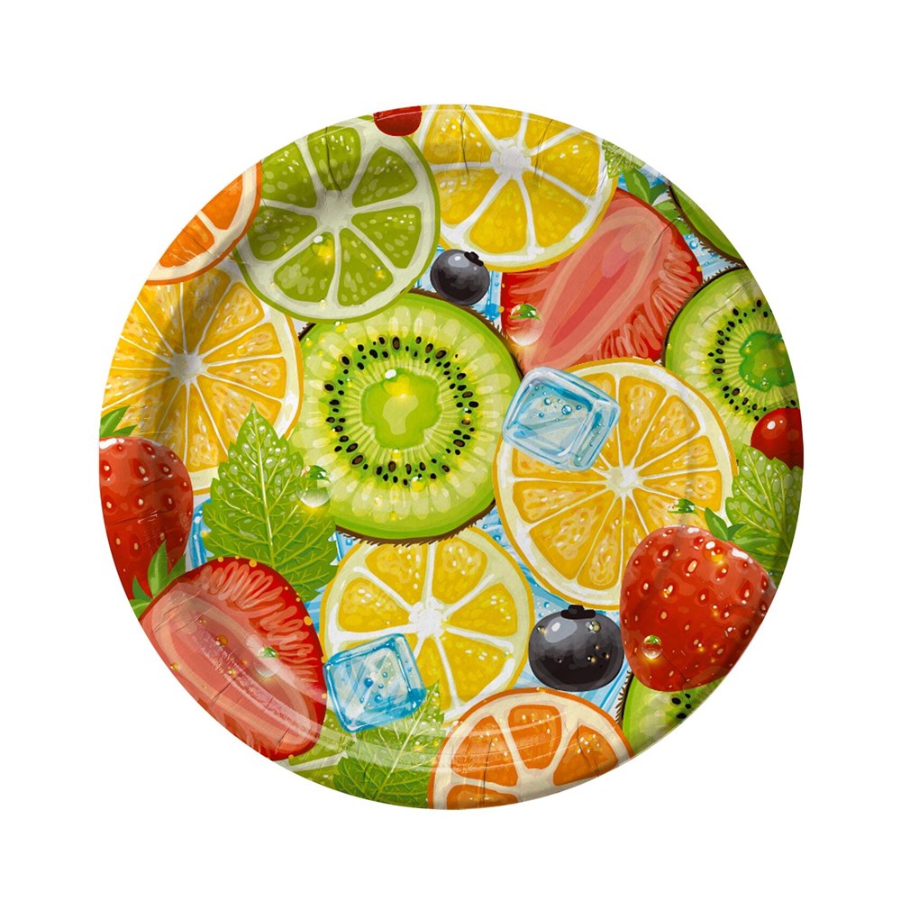 Бум тарелка ИнтроПластика д. 230 мм "Фрукты" (50/500 шт)