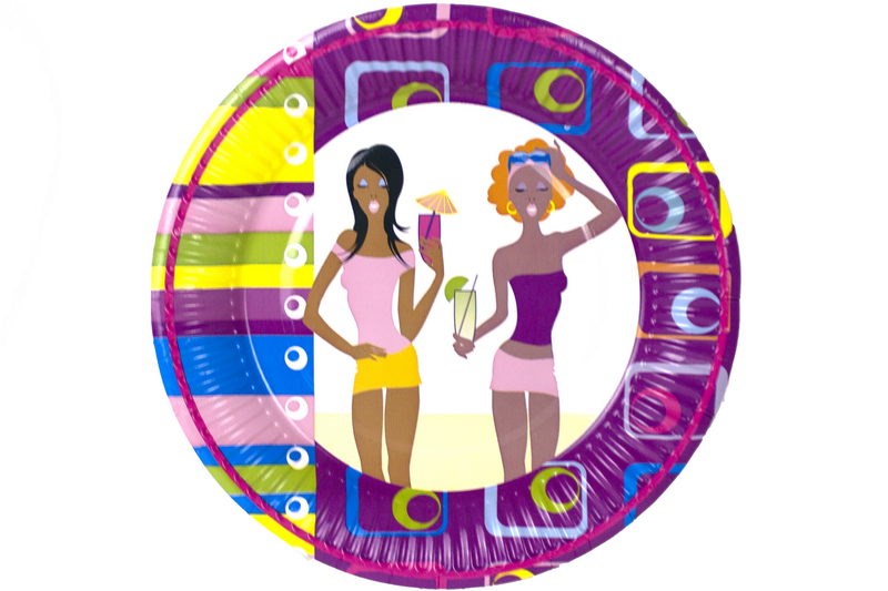 Тарелка бумажная 180мм "Кокетки" Папирус /14уп х 50шт/ крепкие и красивые тарелки для вашего мероприятия.