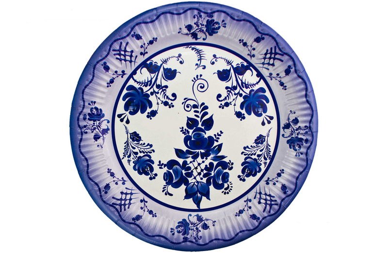 Бум тарелка Папирус д.230мм Гжель /10уп * 50шт/ (500шт)