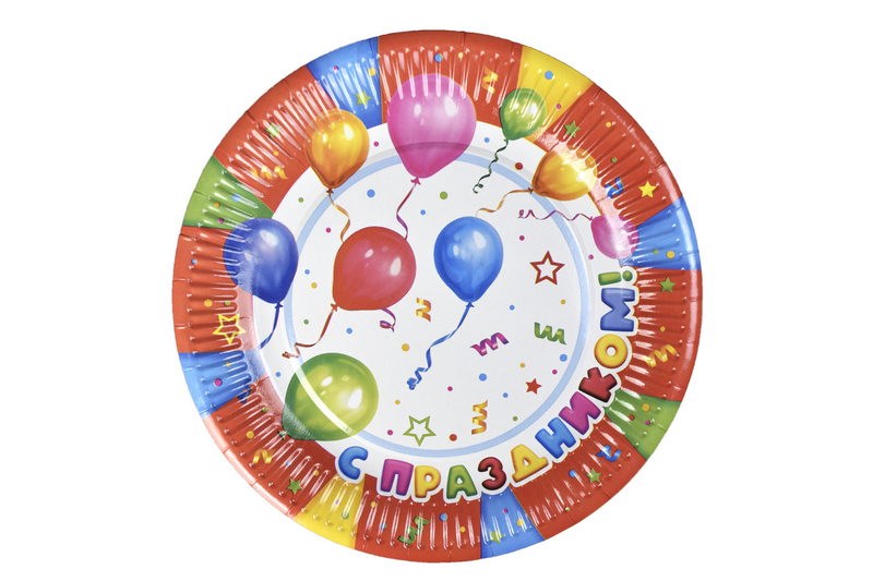 Тарелка бумажная 230мм "С Праздником" Папирус /10уп х 50шт/ можно использовать для вечеринки, дня рождения, свадьбы, фуршета, корпоратива, отдыха на природе, пикника, кейтеринга.