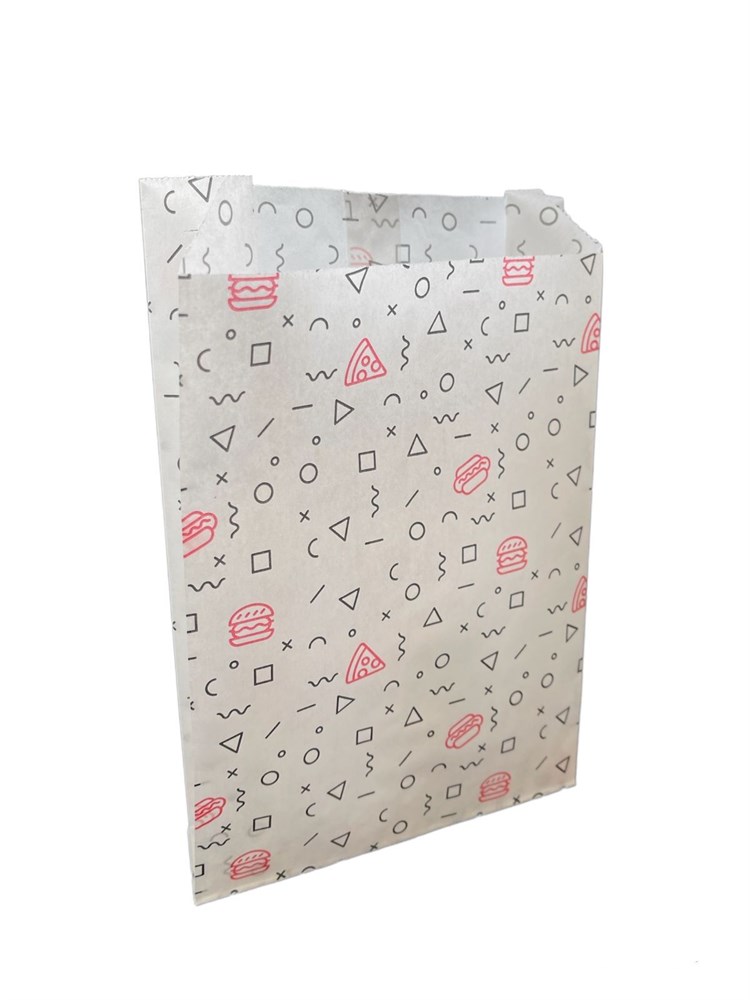 Бумажный пакет 110*30*170 мм для фри с рисунком "Стрит Фуд" /100/3000/