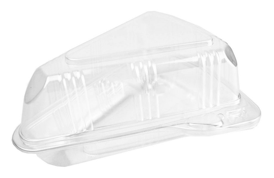 Прозрачная треугольна емкость с совместной крышкой под кусочек торта.