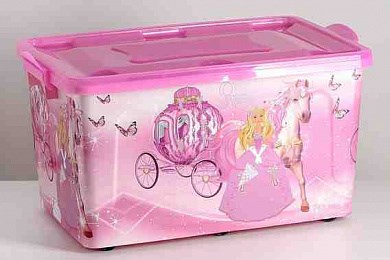 Контейнер детский 35л. №6 Золушка розовый/сиреневый прозрачный