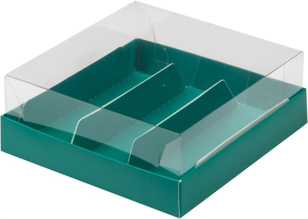 Коробка для эклеров и пирожных с прозрачным куполом 135*130*50 мм (3) (зеленая матовая)