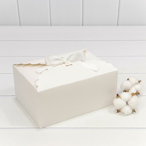 КОРОБКА ПРЯМОУГОЛЬНАЯ 22*16*10 СБОРНАЯ С АТЛАСНОЙ ЛЕНТОЙ БЕЛЫЙ 1/20 1/500