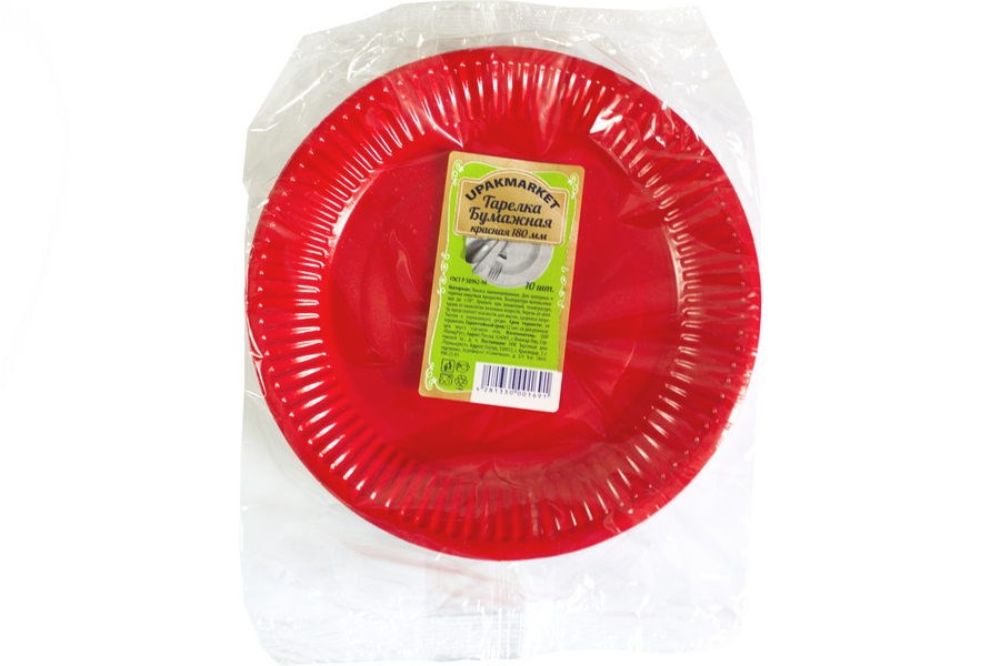 Тарелка бумажная 180мм Красная 10шт. Миксы (60шт/кор.) плотная, поэтому это прекрасное приобретение выдержит основные блюда и конечно любой десерт вашего ребенка, что особенно актуально на детском празднике.