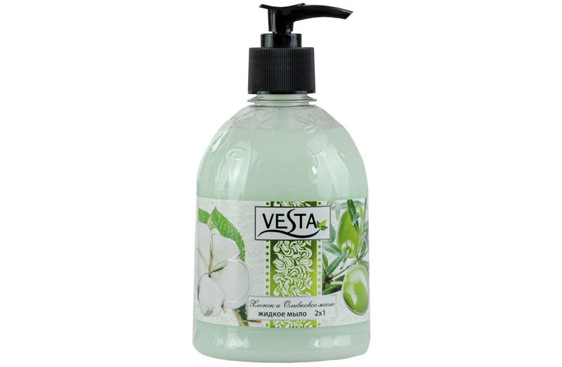 Мыло жидкое 500мл "Хлопок и оливковое масло" 2x1 ВЕСТА. Мягко и бережно очищает, эффективно ухаживает, интенсивно увлажняет,для всех типов кожи