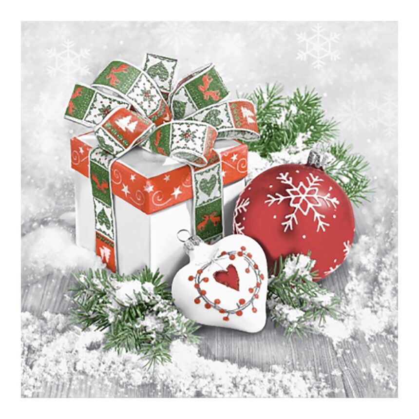 НГ Салфетки 33х33, 20 шт,3 сл. (12 уп) НОВОГОДНИЙ НАТЮРМОРТ С КРАСНЫМ ШАРОМ