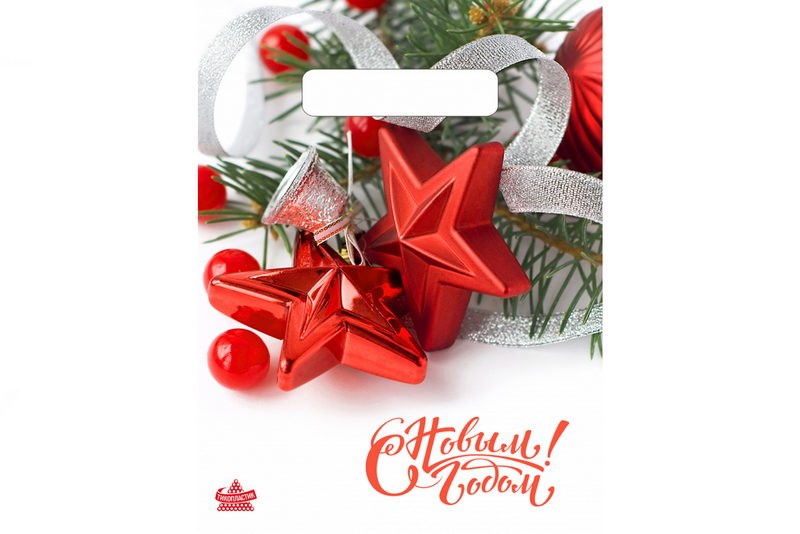 Пакет выруб НГ Тико 19х25 Алые звезды /30уп х 100шт/ (3000шт) .