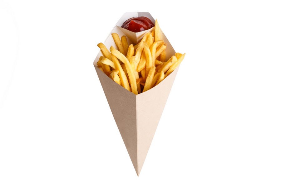 Короб под фри CONE L 80х200мм конусный с отделением под соус OSQ одно из популярных решений для торговых организаций.