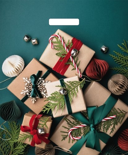 Пакет ПЭ с вырубной ручкой 38х45+3см (60) (Подарки на зеленом) Артпласт (х25/500) НГ