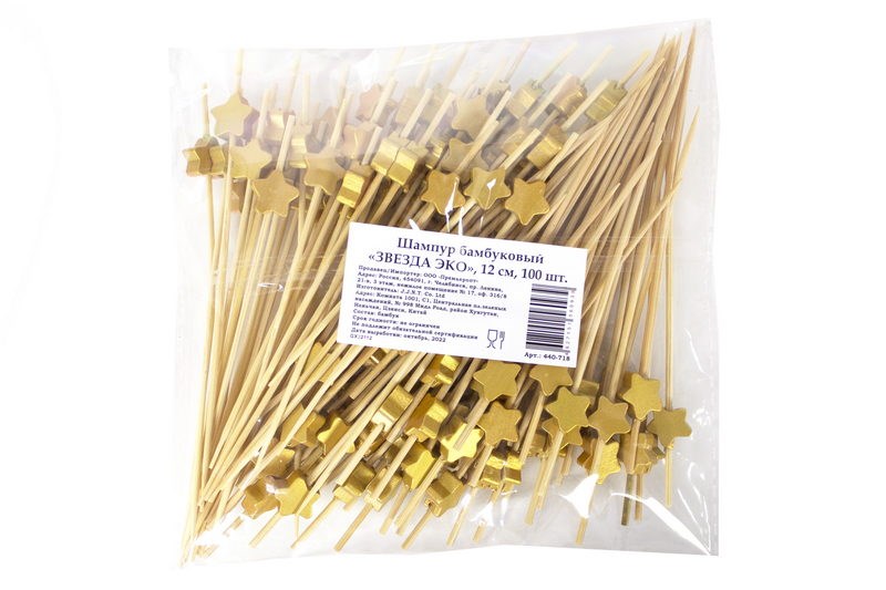 Пика "Звезда ЭКО" 12см бамбук 100шт LINGER благодаря острым кончикам, шпажки-пики из бамбука обеспечивают надежное крепление ингредиентов и предотвращают их скольжение.