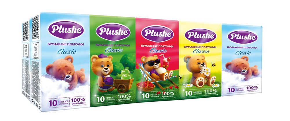 Платочки бумажные Plushe Classic Standart (плюше стандарт) 2-слойные 10лист, (28упx10шт) 280 шт ЮГ