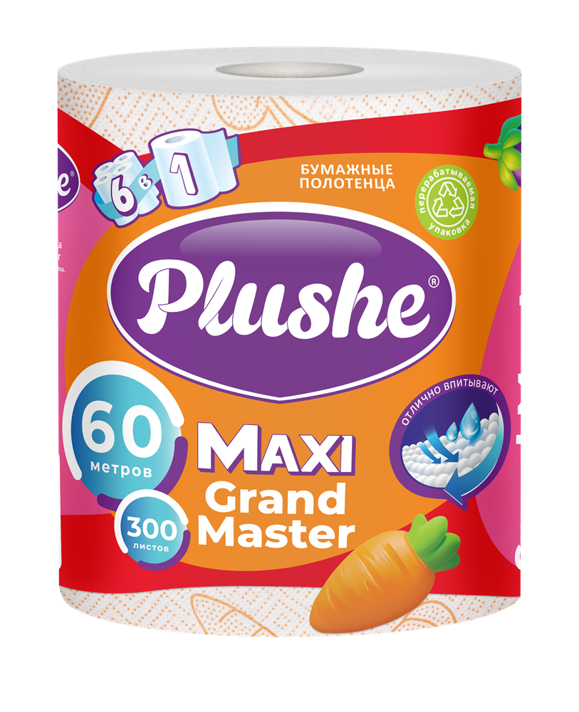 Полотенце бумажное Plushe Maхi Grand Master (Плюше Гранд Мастер) 1 рулон 2-х слойные 60м 1/10