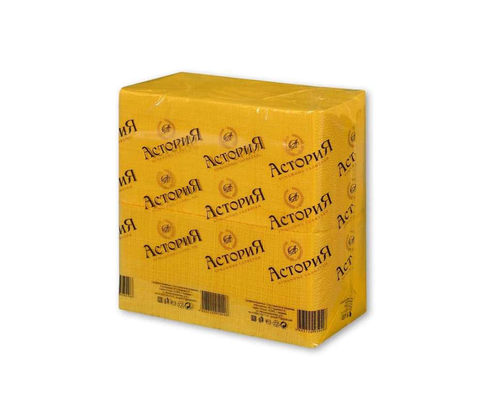 Салфетки 24х24 1-слойн. (АСТОРИЯ) 400л/4уп Интенсив Желтые (В)