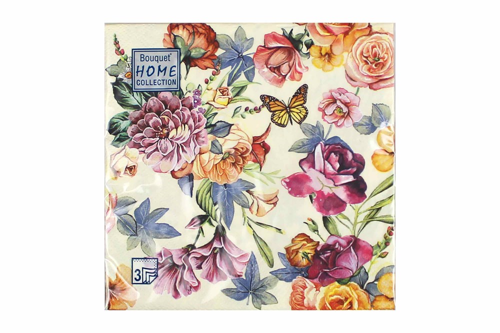 Салфетки 33х33 3 - слойн. Art Bouquet 20 шт (12 уп) Красивые цветы. Кремовый фон