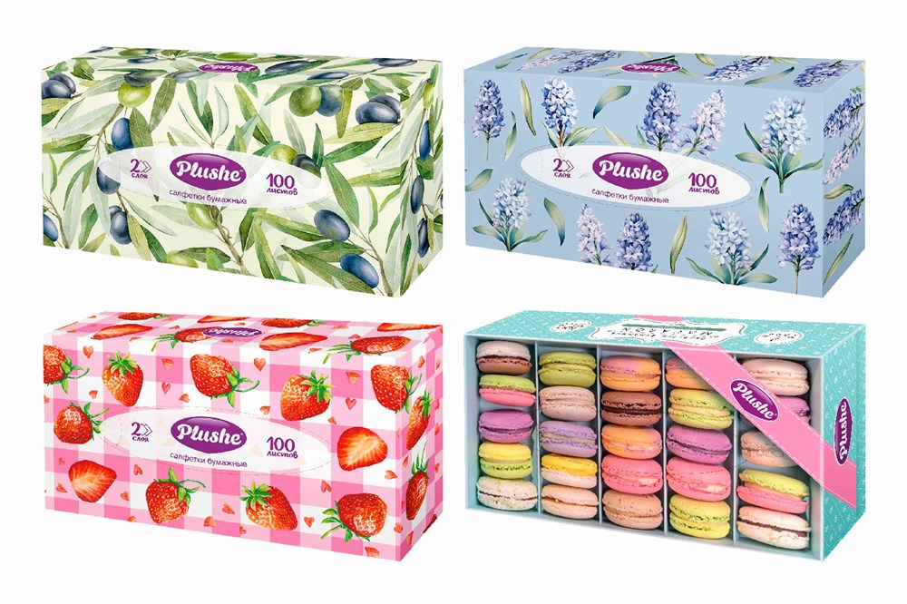 Бумажные салфетки формата нон-стоп надежно хранятся в коробочках по 100 штук и легко достаются даже одной рукой. Салфетки Plushe изготовлены из 100% первичной целлюлозы, что делает их мягкими и воздушными, поэтому вы без сомнения можете доверить им заботу о нежной коже рук и лица. В ассортименте представлен широкий выбор дизайнов на любой вкус.