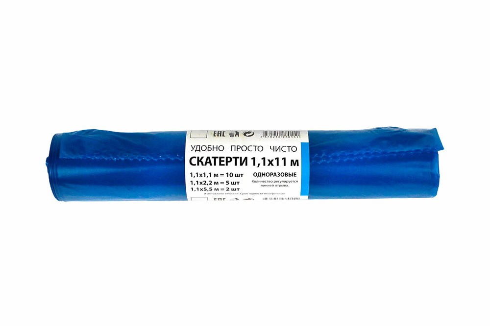 Скатерти 110х1100 ПВД Голубая однотонная УПЧ 10/5/2 шт/рул (20рул)