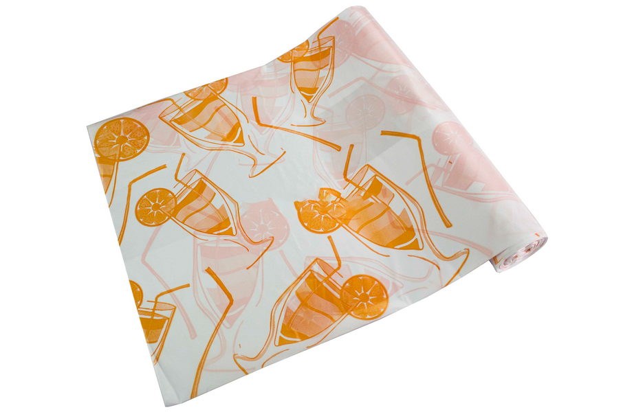 Скатерть 110х180 "Коктейль" (в рулоне 5 штук) PR предотвращают повреждение и загрязнение стола, особенно если он изготовлен из ценных пород дерева или мрамора и облегчают уборку после еды, так как защищают поверхность стола от крошек и пятен.