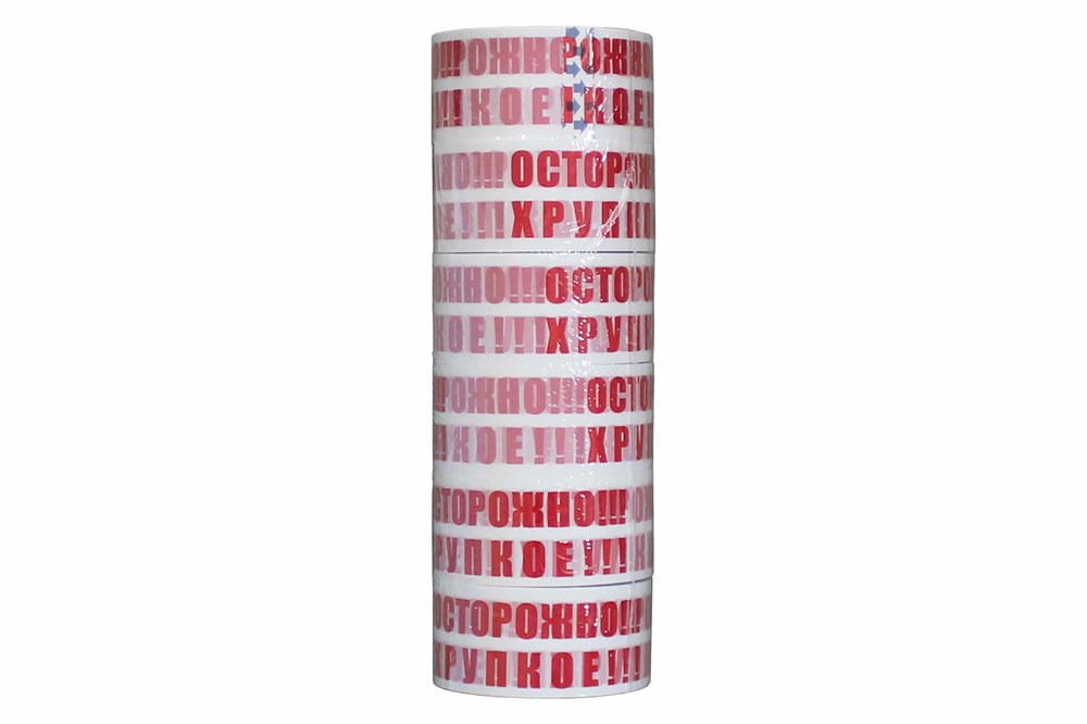 Скотч "ОСТОРОЖНО ХРУПКОЕ" 48 мм*50 м, 45 мкм (белый красная печать)) (36 рул)
