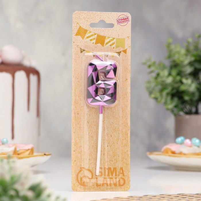 Свеча для торта «Алмаз», цифра 6, фиолетовый металлик