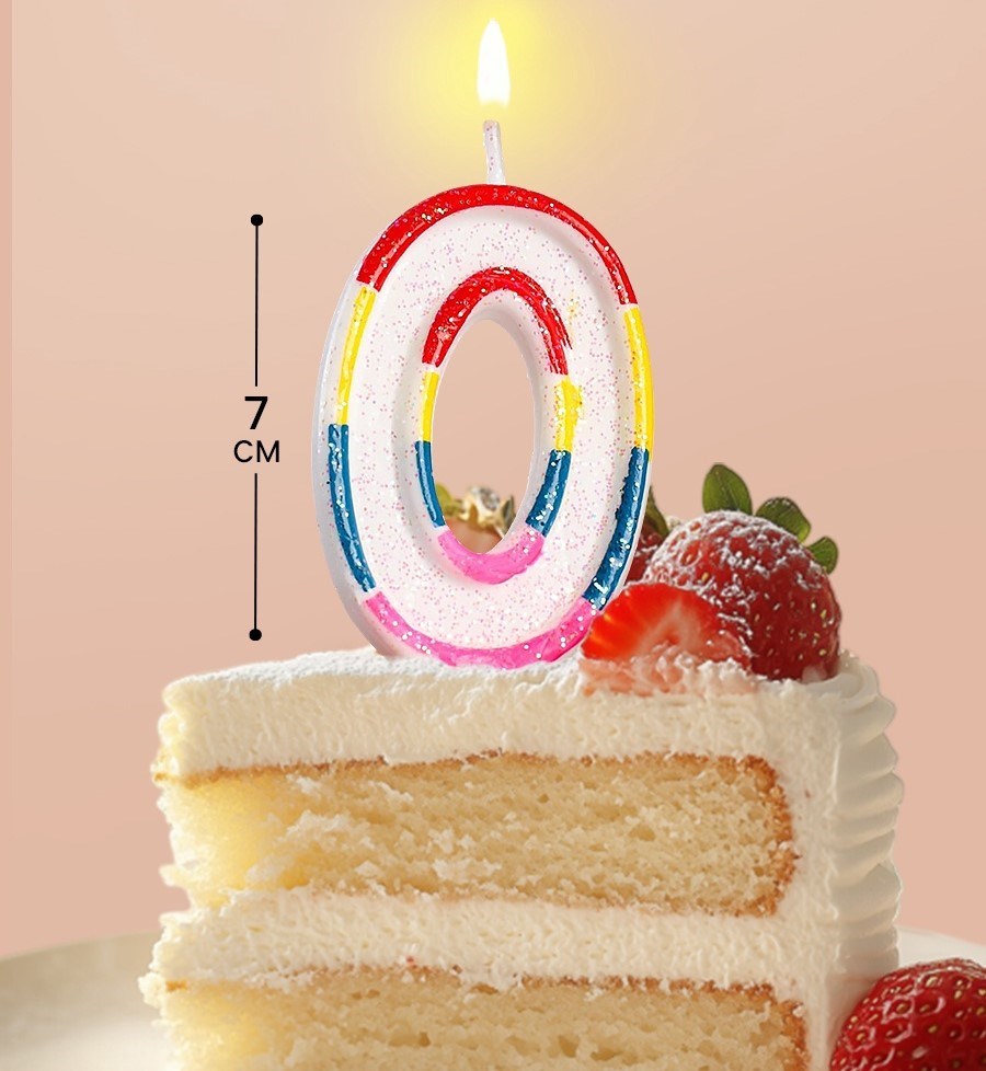 Свеча для торта с блестками «Блестящий ободок», цифра "0", 7 см 403530