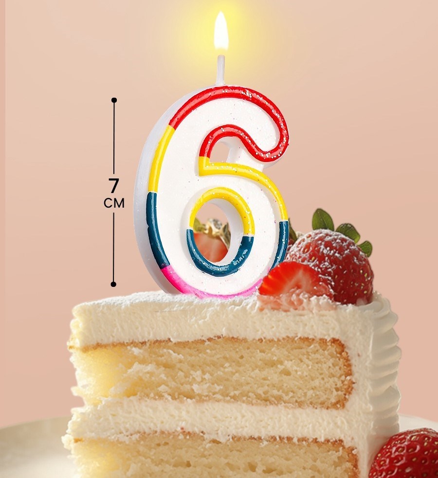 Свеча для торта с блестками «Блестящий ободок», цифра "6" , 7 см 403536