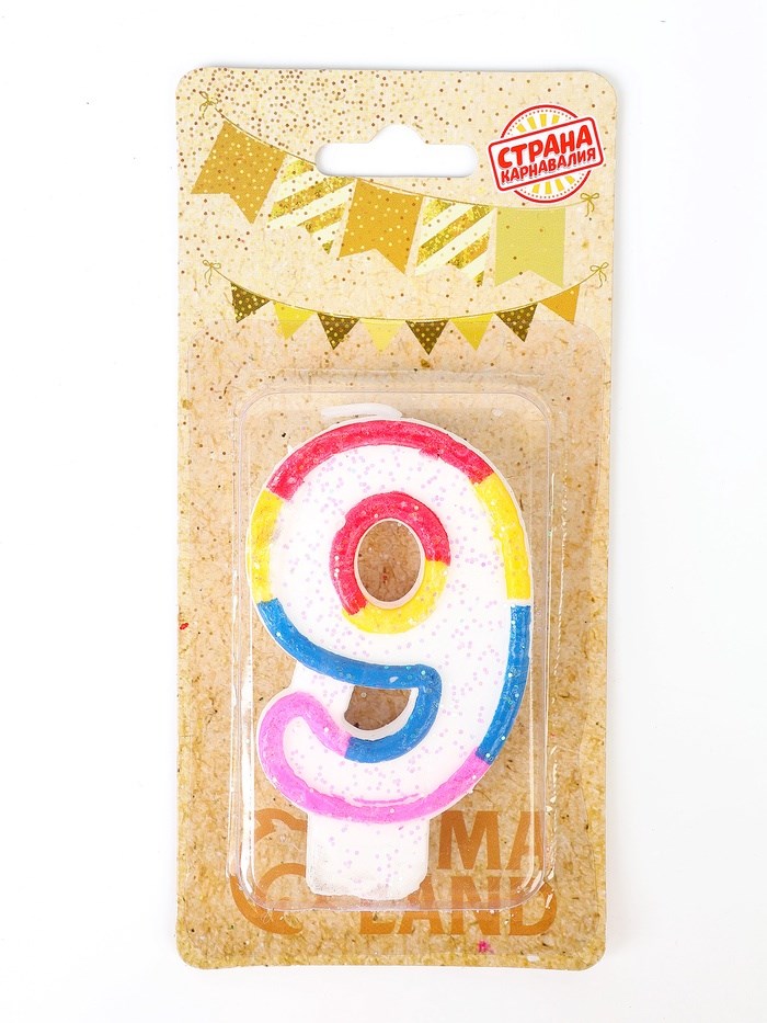 Свеча для торта с блестками «Блестящий ободок», цифра "9" , 7 см 403539