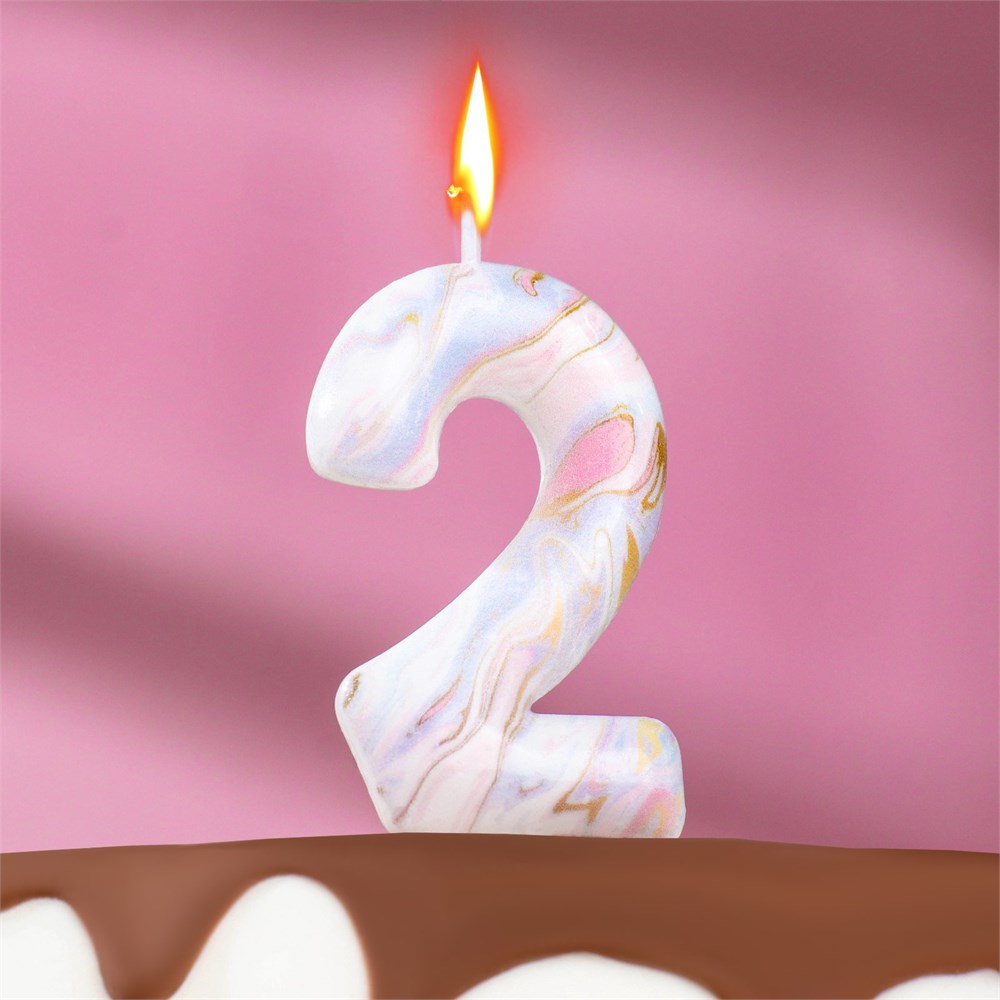 Свеча в торт «Белый мрамор», цифра 2, 5.5 см