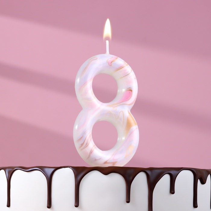 Свеча в торт «Белый мрамор», цифра 8, ГИГАНТ, 9 см