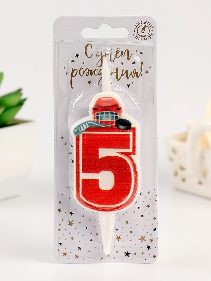 Свеча в торт «Хоккейная», цифра 5, красная