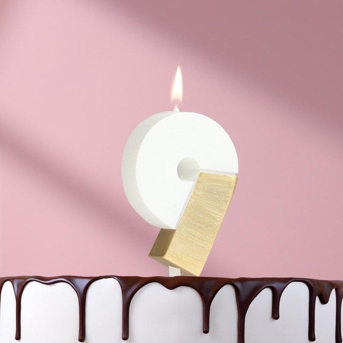 Свеча в торт «Манхеттен», цифра 9, белая с золотом, 5 см