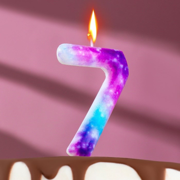 Свеча в торт на шпажке «Галактика», цифра 7, 9 см, ГИГАНТ