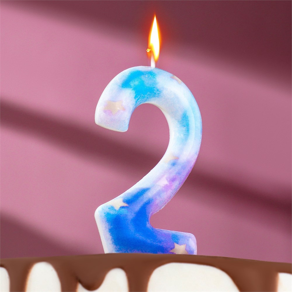 Свеча в торт на шпажке «Звездопад», цифра 2, 9 см, ГИГАНТ