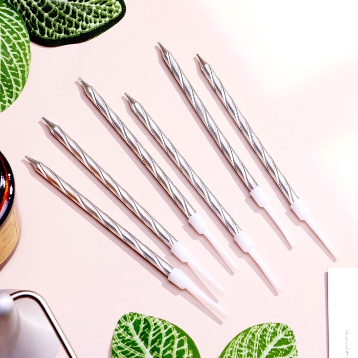 Свечи в торт «Металлик» , 14 см, 6 шт. с подставкой, серебристые