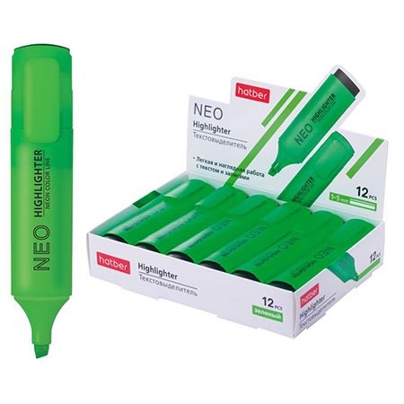 Текстовыделитель ХАТБЕР Neo зеленый, флуоресцентный, клиновидный пишущий узел