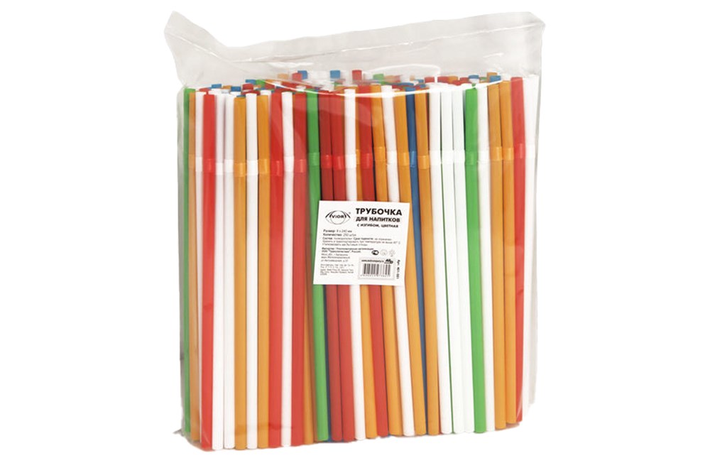 Трубочки для соков 5*240 мм с изгибом 250 шт ЦВЕТНЫЕ 32 уп. в кор. AVIORA